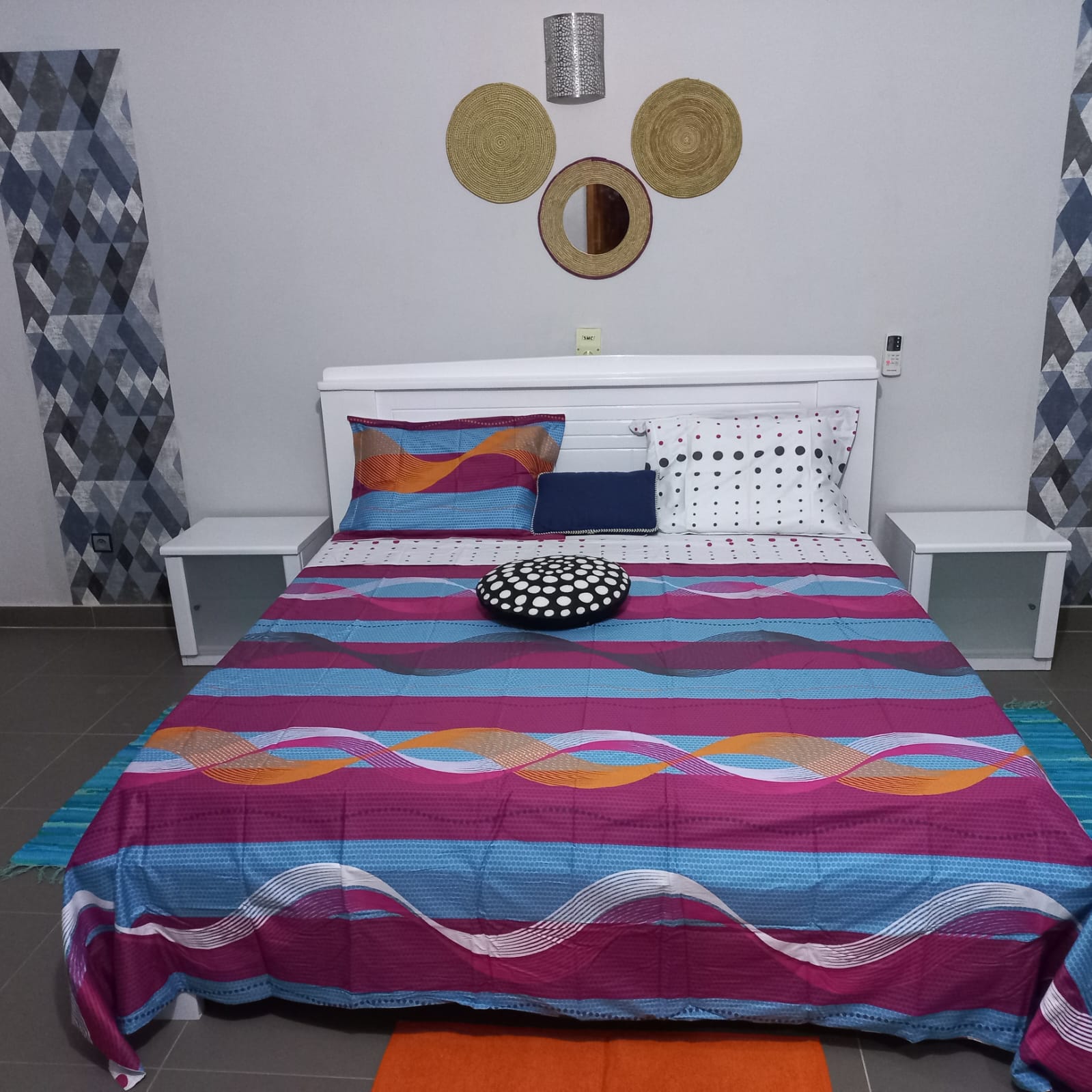 Nous mettons en location au premier étage, à Fidjrossè club des rois à 200 mètres des pavés, un appartement meublé de deux chambres un salon chaque chambre avec sa salle de bain.
