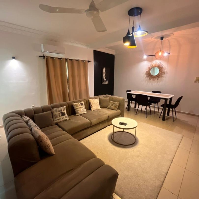 Il est mis en location un appartement meublé aéré et lumineux composé de deux chambres un salon au 1er étage situé non loin de la route des pêches à Fidjrossè dans un quartier calme reposant non loin de l aéroport et du centre ville avec toutes les commodités: