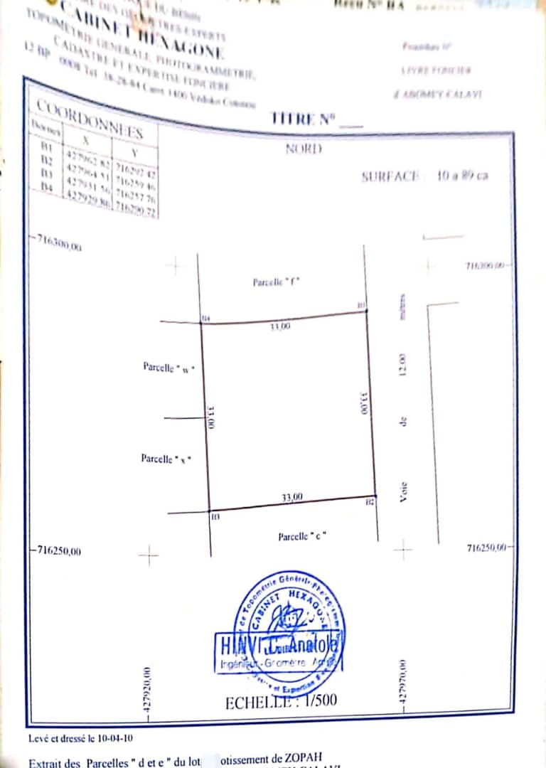 Nous mettons en vente pour le compte des héritiers une parcelle située a 100 mètres du goudron, de la clôture de l’aéroport et de l’école de base fidjrossè centre de cotonou